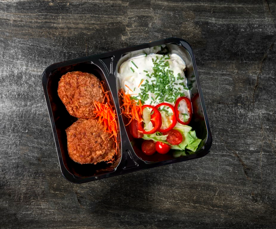 Kartoffelsalat og 2 frikadeller